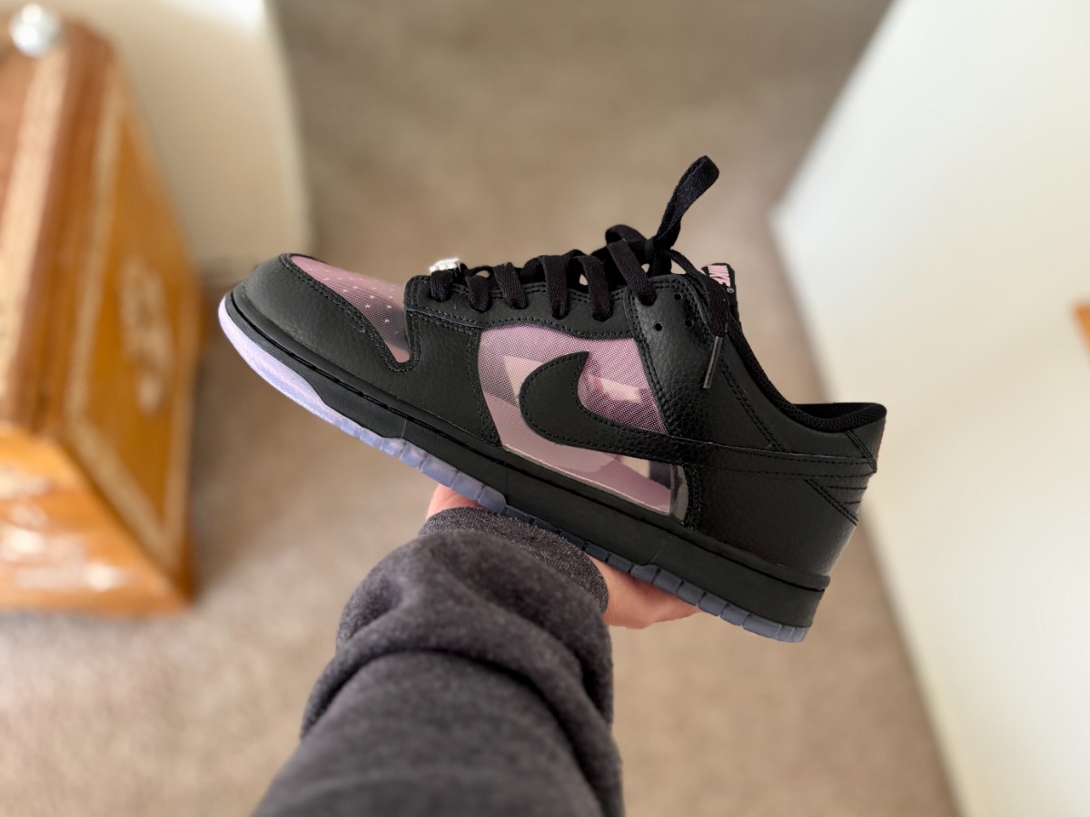 I’ve always been curious about clear sneakers since back when pairs like the Invisible Woman AF1s made waves. I never grabbed any of those pairs back then, but the black-and-pink combo here was the final push. The look is wearable, not too flashy, and the gradient tint adds personality without forcing you to stress over sock color. I was able to get these on super sale from Xhibition (around 40% off), so at that price it was worth taking the plunge.