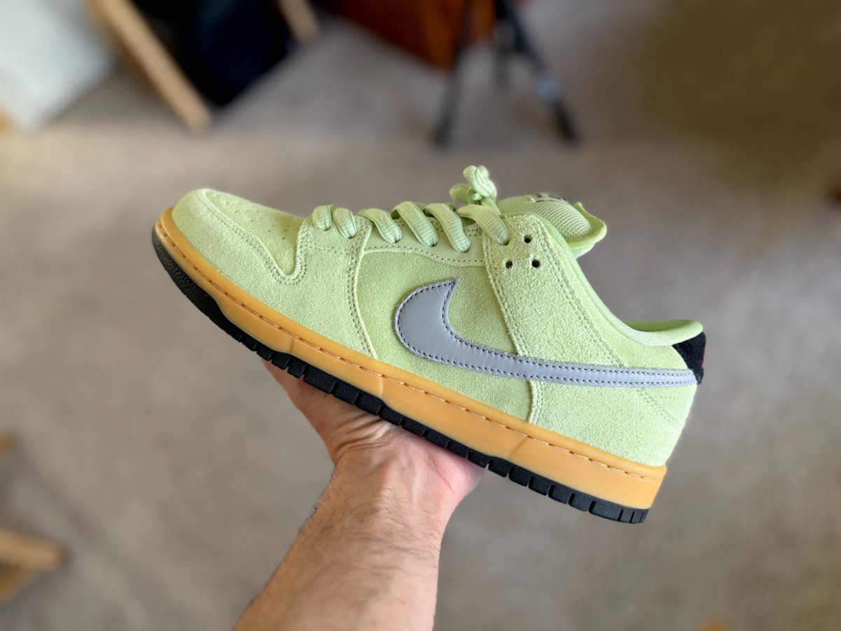 I’d been after the Nike SB Dunk Low Verdugo Mountain since the first images surfaced — that pistachio, or “Light Liquid Lime,” upper instantly caught my eye. The mix of muted green tones and the gum midsole gives the shoe such a clean, outdoorsy aesthetic that stands out without trying too hard.